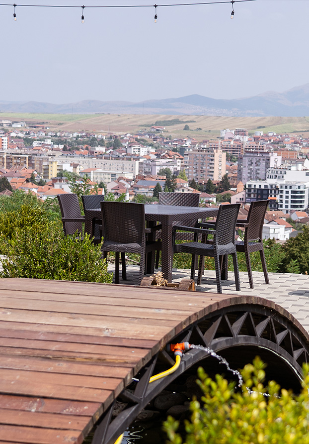 Panorama's stunning open-air views and expansive patio seating include the City of Gjakova, Hill of Cabrat and Pashtrik mountains.